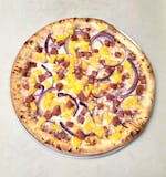 BBQ sauce, mozzarella grande, pineapple, red onion, chicken, bacon, BBQ sauce & fresh cilantro.