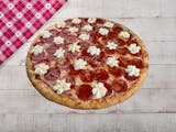 Pizza crust aged 48-72 hours, stanislaus vine-ripe tomato sauce, grande mozzarella cheese, pepperoni, red onion, pickled jalapeño, minced garlic. Finished with dried basil & oregano.