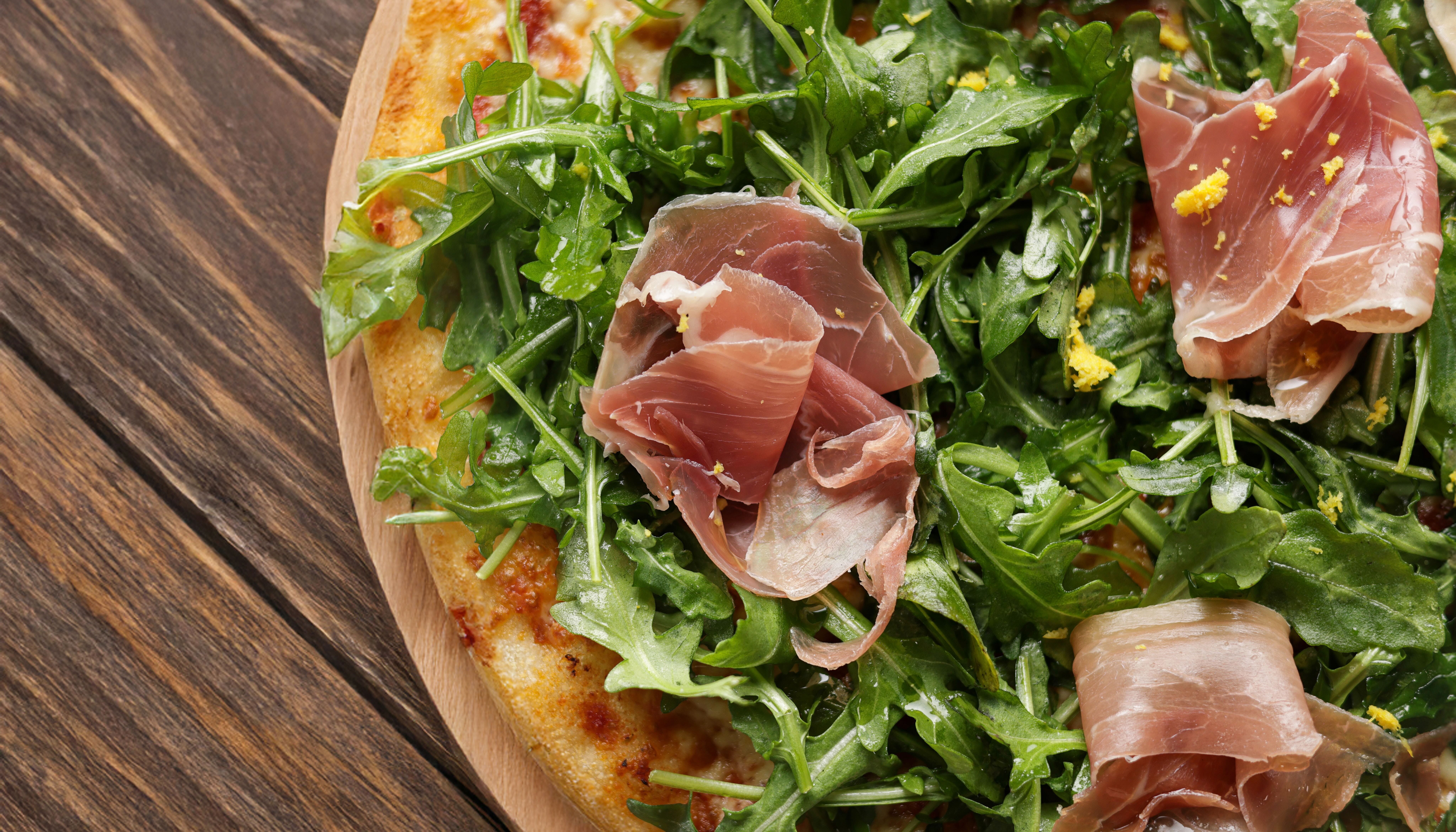 Tomato sauce, mozzarella, prosciutto di parma, arugula & lemon zest.