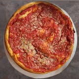 Pepperoni, sausage, onions, green peppers, kalamata olives, feta and mozzarella cheese.