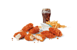 6pc Boneless wings with up to 2 flavors, regular fries ,1 dip and 20oz coke/pepsi.