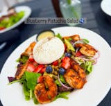 Blackened shrimp, fresh blueberries, strawberries, pistachios, red onions, and fresh burrata over a romaine and spring mix with house made lemon poppy