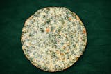 Our signature bar-style pizza cooked well done to perfection, with a cheese and Spinachio mix baked right to the edge. Crispy, golden, and bursting with flavor—this pie is a true standout!