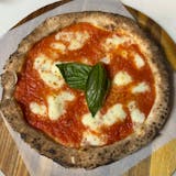 Classic Margherita with tomato sauce, mozzarella cheese, parmigiano cheese and basil