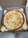 No tomato sauce. Ricotta, mozzarella cheese, fresh garlic, and olive oil.