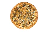 Tomato sauce, pepperoni, mushrooms, Italian sausage, onions, mixed bell peppers & mozzarella cheese.